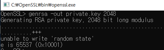 개인키 생성 : genrsa -out 키이름 2048 >> genrsa -out private.key 2048