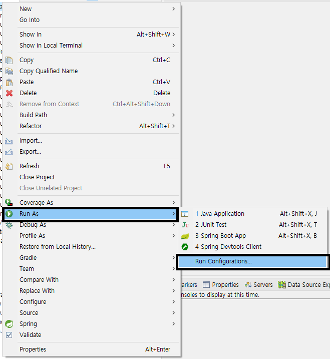 1. 프로젝트 오른쪽 클릭 > Run As > Run Configuration ... 클릭