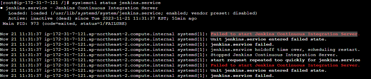 1. 젠킨스 서비스 파일(/usr/lib/systemd/system/jenkins.service) 에 자바 경로 수정