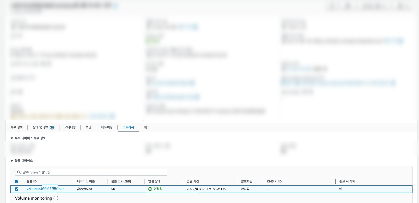 1. 인스턴스 > 인스턴스 상세 > 스토리지 탭 > 볼륨ID